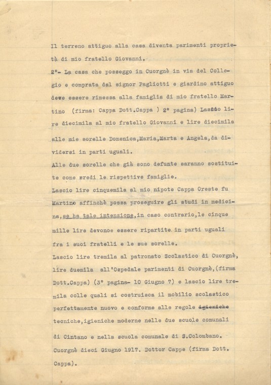 Il dottor Giuseppe Cappa nasce a Cintano il 26 gennaio 1859 ed è citato come ufficiale sanitario del paese fin dal 1898. Laureato a Torino, dopo la nomina a medico condotto si dedica con grande altruismo e disponibilità alle famiglie più bisognose, facendosi promotore e sostenitore di iniziative benefiche assistenziali specialmente per i bambini, da meritare nel 1902 la nomina a Cavaliere della Corona d'Italia.