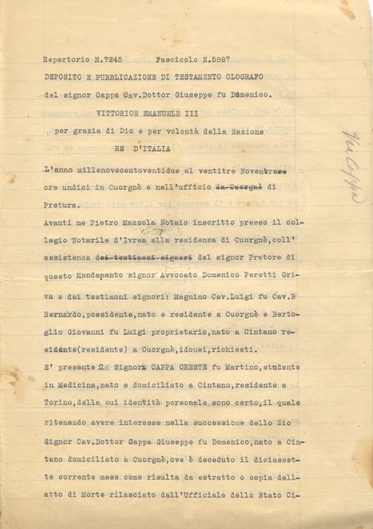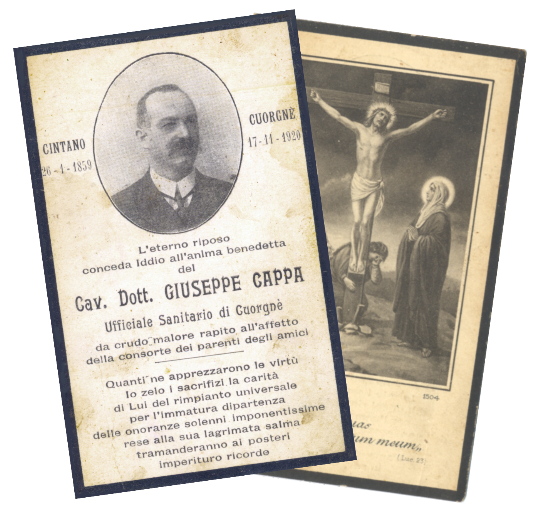 Il dottor Giuseppe Cappa nasce a Cintano il 26 gennaio 1859 ed è citato come ufficiale sanitario del paese fin dal 1898. Laureato a Torino, dopo la nomina a medico condotto si dedica con grande altruismo e disponibilità alle famiglie più bisognose, facendosi promotore e sostenitore di iniziative benefiche assistenziali specialmente per i bambini, da meritare nel 1902 la nomina a Cavaliere della Corona d'Italia.
