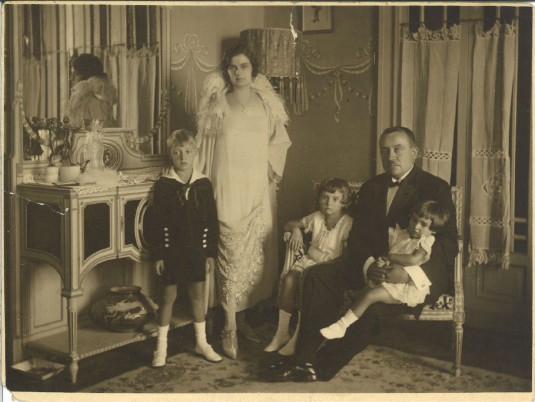 probabilmente negli interni della villa ad Alassio, 1925 circa. Sono presenti: Angiolina Leonardi (1897) e Giacomo Chiuminatto (1884), con i figli Antonio (1918), Mariellina (1921) e Bianca (1923), più la madre di Giacomo.